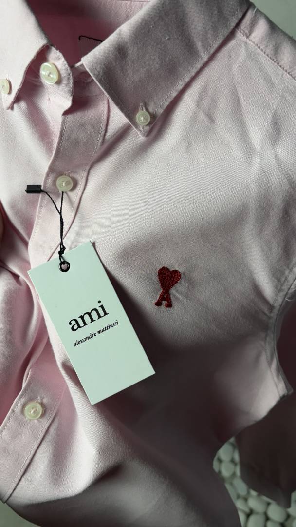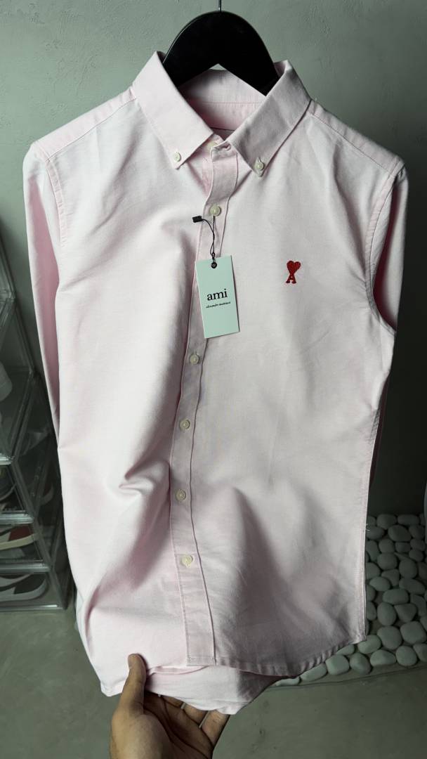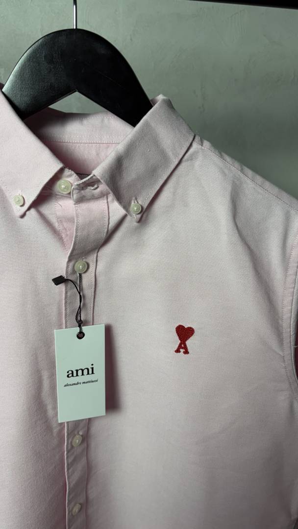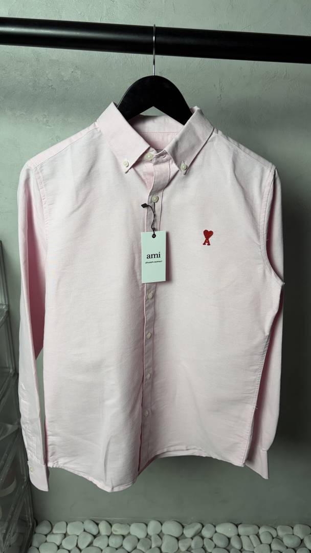 Ami Heart Logo Premium Pink OxFord Shirt 1214