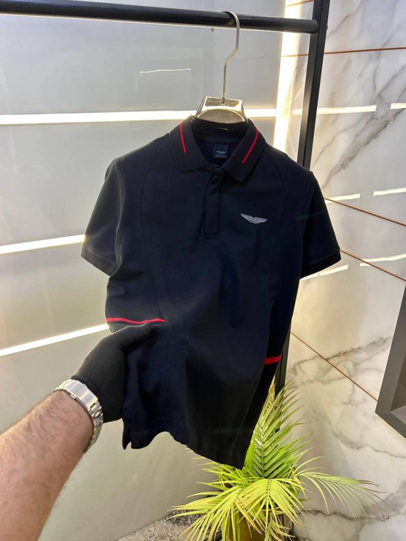 Aston Martin Hacket t Black Polo Premium Collar Neck T-shirt F2295-B2