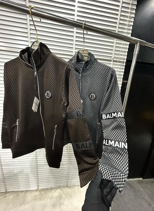 Balmai n Paris Logo Imported Embossed Print Brown Super Premium Track Suit With Brand Carry Bag F2338-BR