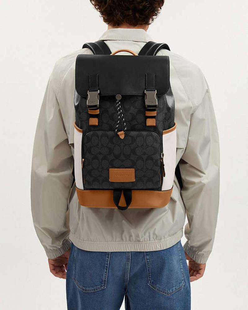 • Coach_CB_Track_Backpack_Colorblock_Signature_Canvas_With_Dust_Cover_&_Carry_Bag