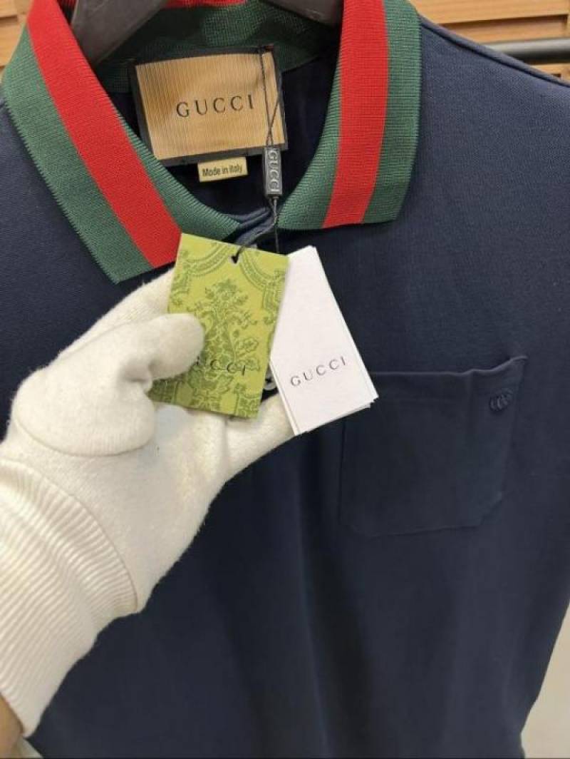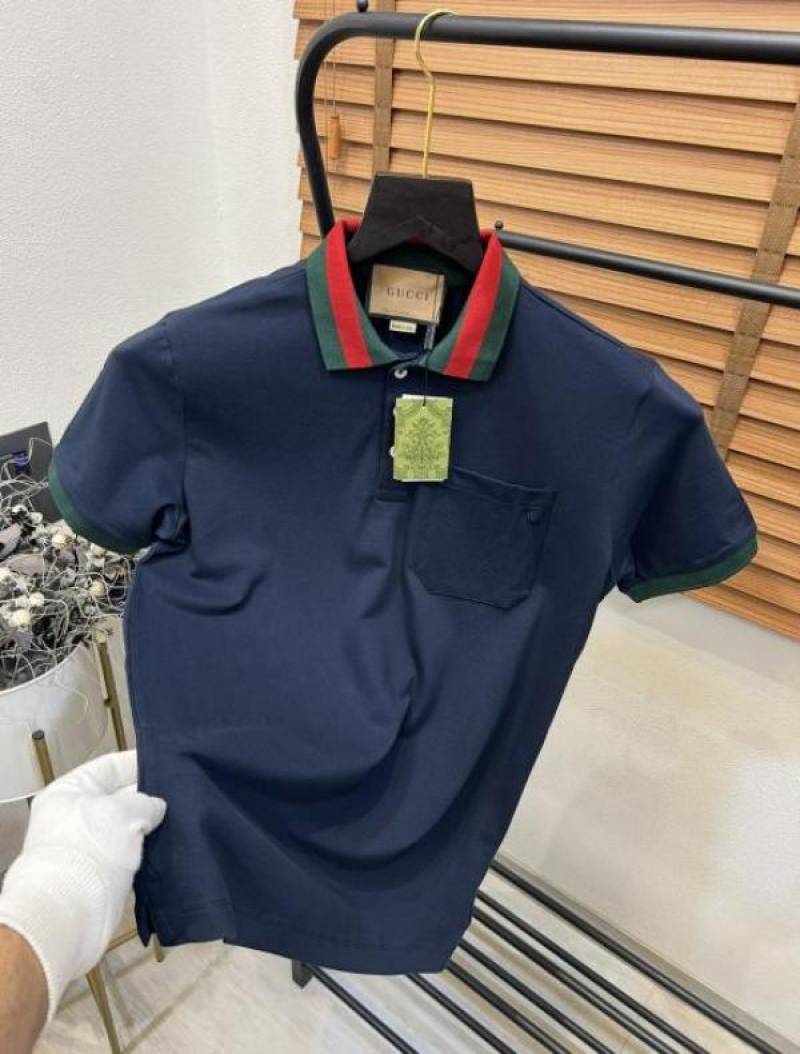 • Gucc_i Classic Logo Embroidered Navy Blue Premium Polo T-shirt