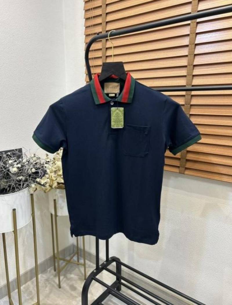 Gucc_i Classic Logo Embroidered Navy Blue Premium Polo T-shirt