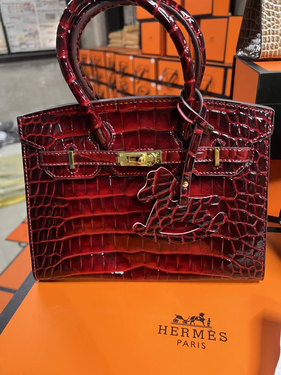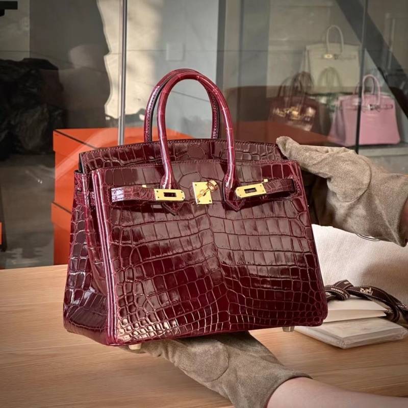 • Herms Birkin HSS 25 Noir (wine-Red)Bleu Saphir Crocodile Porosus Lisse Palladium Hardware 6002