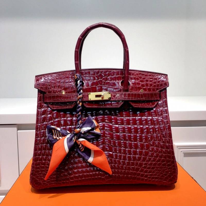 Herms Birkin HSS 25 Noir (wine-Red)Bleu Saphir Crocodile Porosus Lisse Palladium Hardware 6002