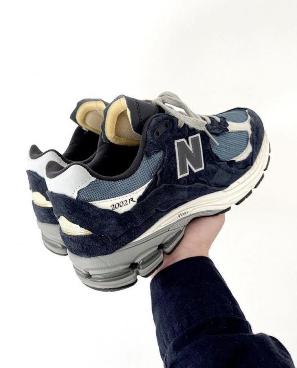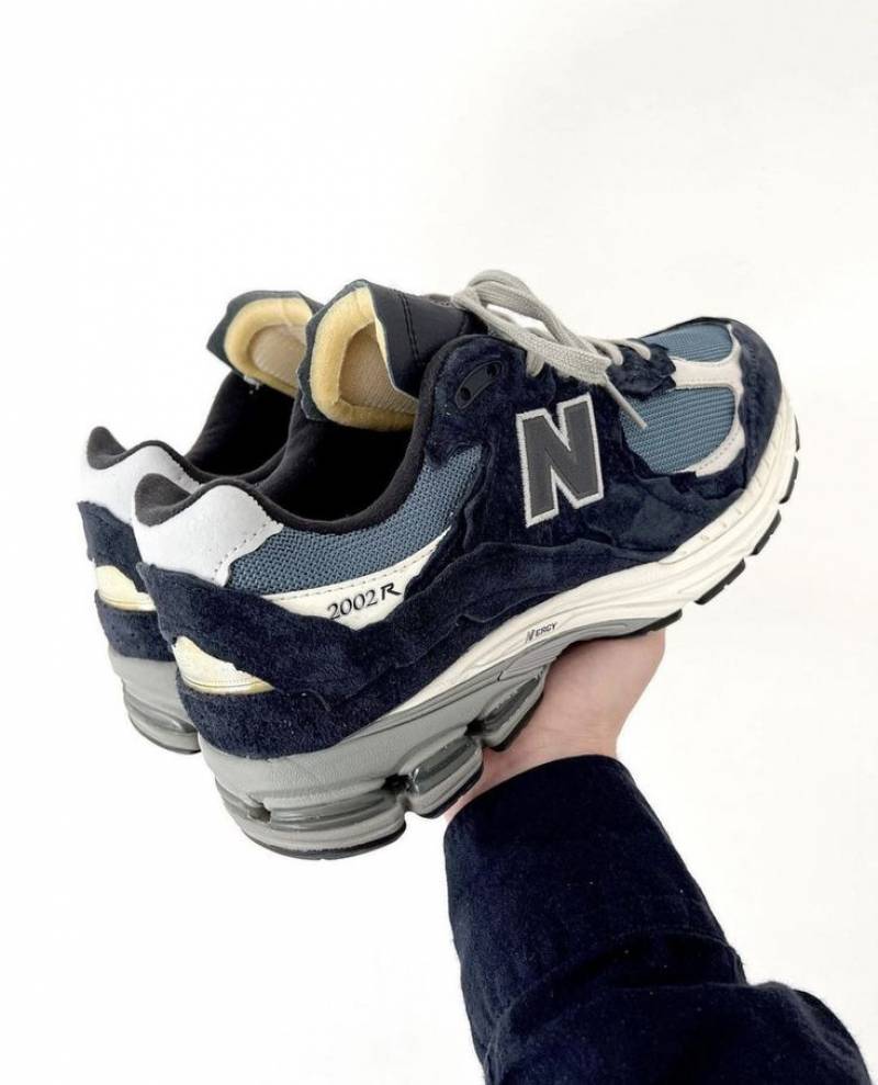 Taken from the 2022 'Protection Pack,' the New Balance 2002R 'Dark Navy' delivers a tonal colorway of the retro-inspired lifestyle runner. The breathable blue mesh upper is fortified with a series of navy suede overlays, complete with tattered edges that give the shoe a dramatically distressed aesthetic. A molded 'N' logo adorns the quarter panel, while 2002R branding is stamped below the lateral collar. The sneaker rides on a two-tone ABZORB midsole with N-ergy cushioning in the heel.