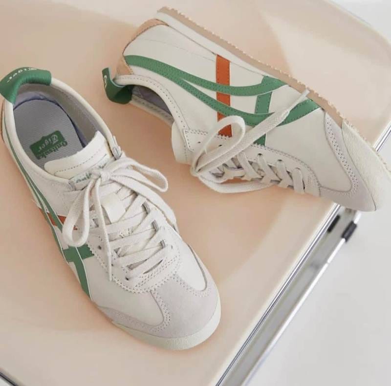 The Onitsuka Tiger Mexico 66 "Cream/Green/Orange" (often referred to as the Piquant Orange edition) is a staple for those who love a vintage sporting aesthetic. This 7A Premium First Copy is specifically curated for girls and women, offering the same sleek, low-profile silhouette in smaller, more feminine proportions. It features a soft cream leather base accented by lush forest green and bright piquant orange stripes, creating a look that is both organic and vibrant.