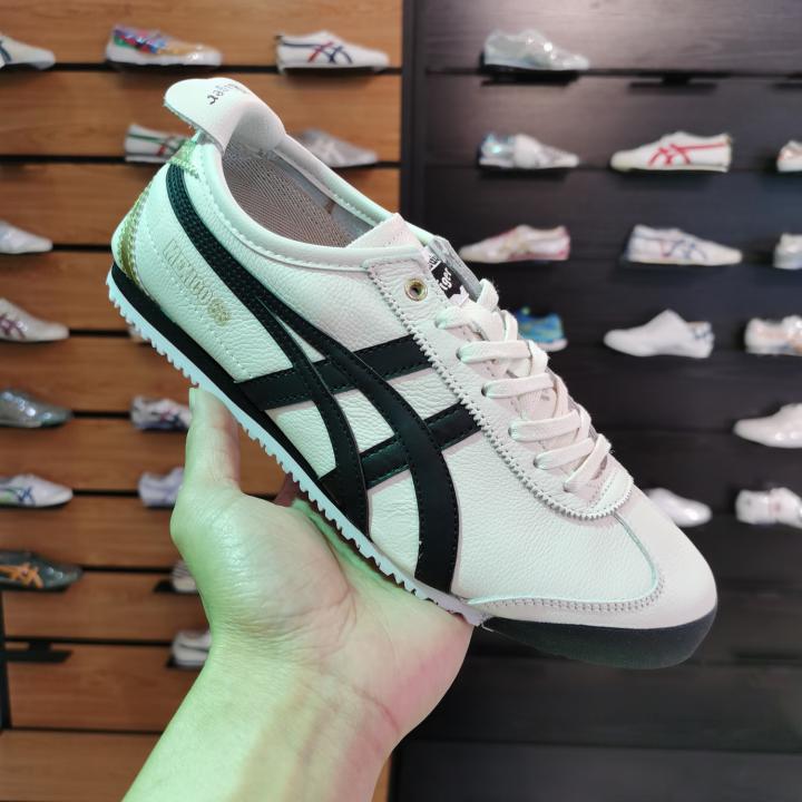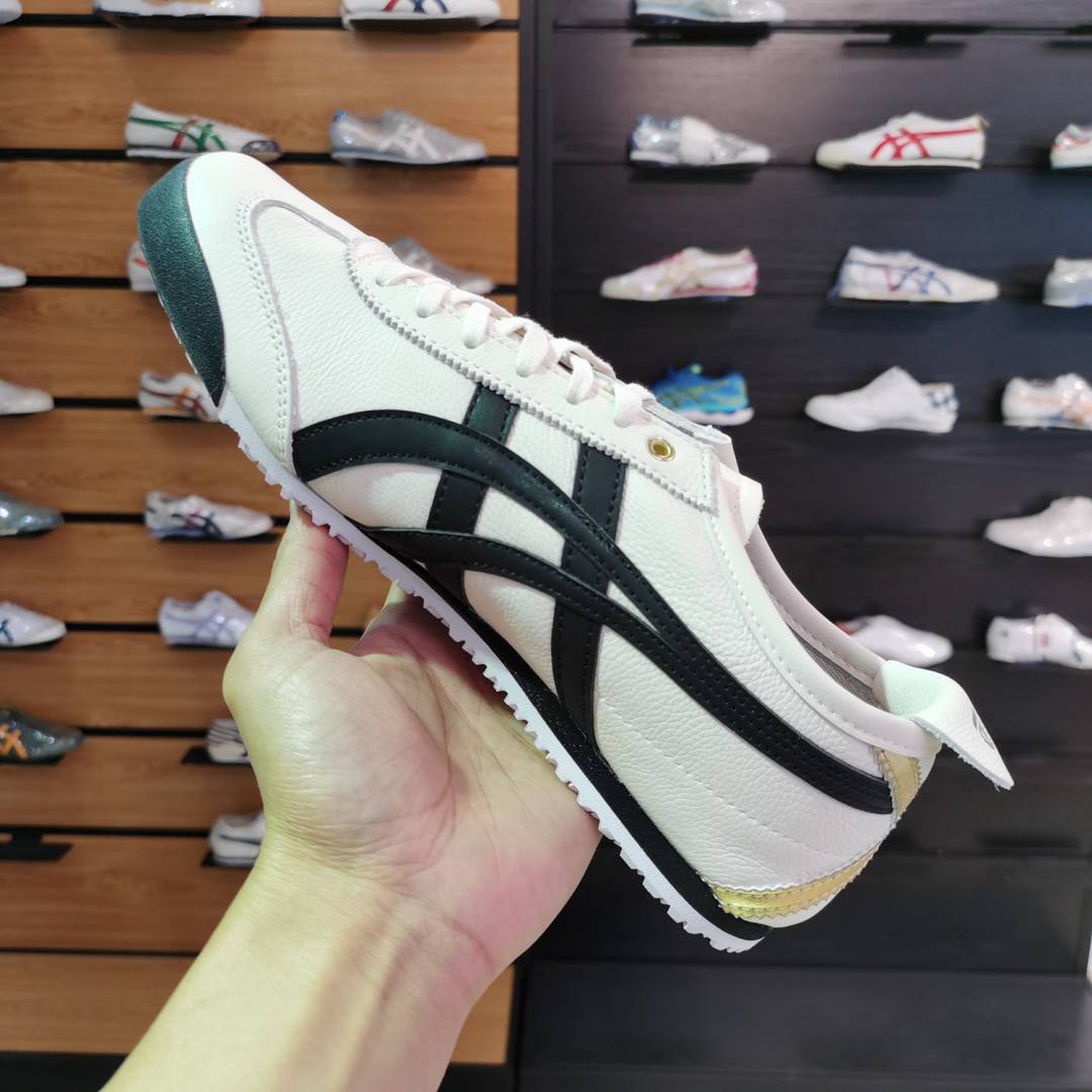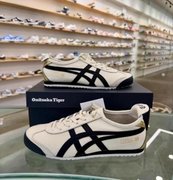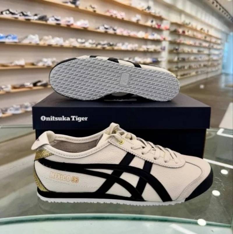 The Onitsuka Tiger Mexico 66 in "Cream/Black/Gold" is a premium, high-contrast edition of the iconic 1966 silhouette.1 This 7A Master Quality (First Copy) replica specifically captures the refined "Cream/Black" aesthetic, featuring a smooth cream-colored base accented by bold black Tiger stripes and subtle metallic gold details on the heel flap and logo.2 It is the perfect choice for men looking for a vintage racing aesthetic that is versatile enough for both professional and casual environments.