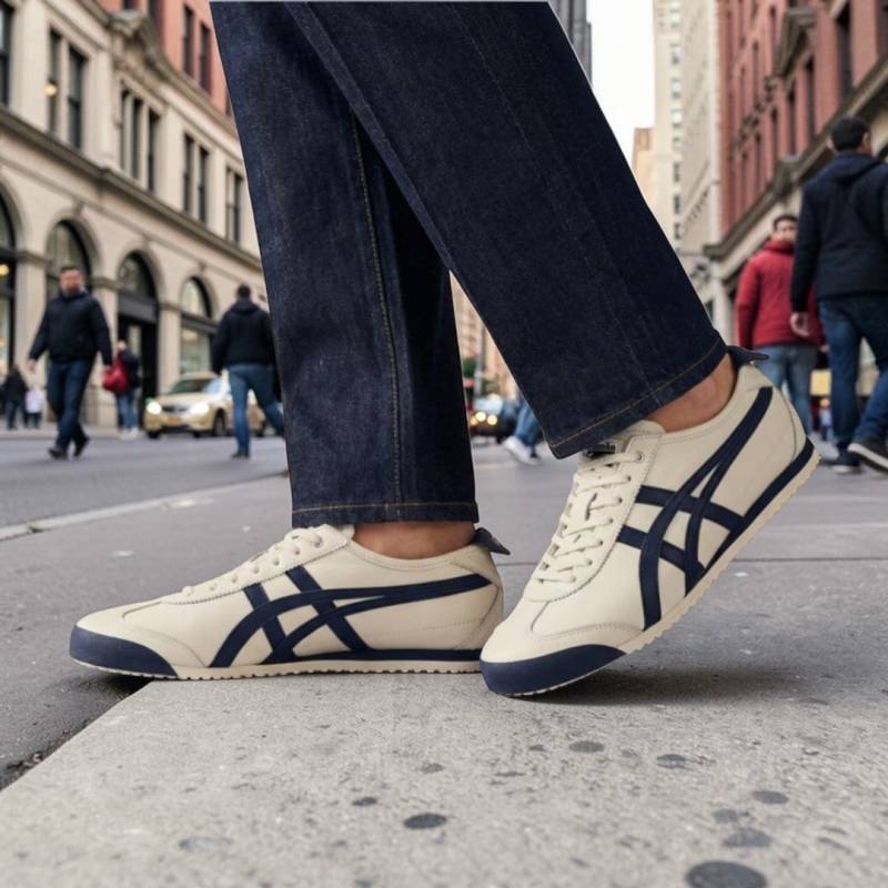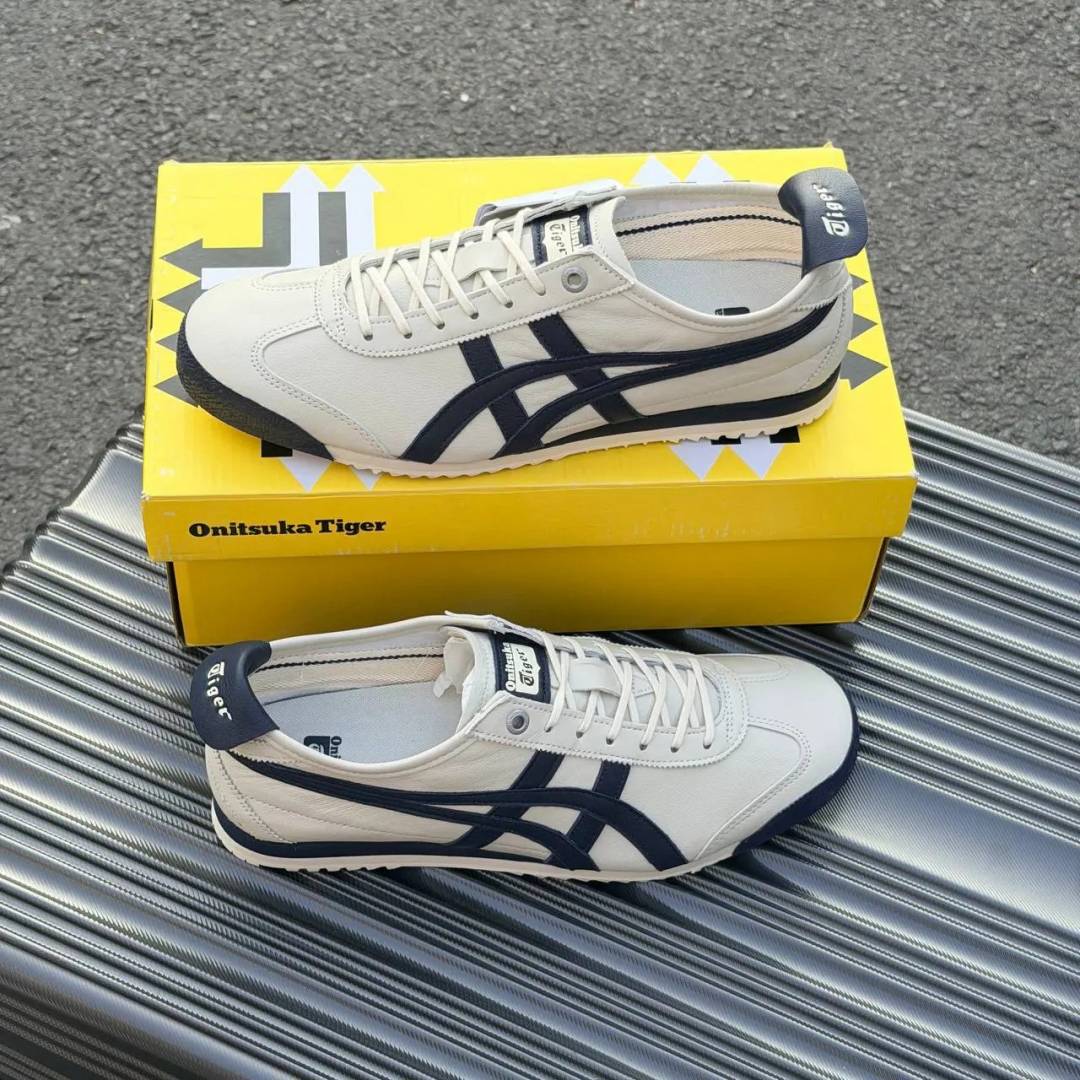 The Onitsuka Tiger Mexico 66 SD in "Birch / Peacoat" is the "Super Deluxe" (SD) upgrade of the original 1966 icon. While maintaining the classic cream-base and navy-stripe aesthetic, the SD model is re-engineered for superior modern comfort. This 7A Premium Quality edition replicates the refined silhouette and advanced cushioning of the SD line, making it the perfect choice for those who love the vintage look but demand a softer, more supportive feel for all-day walking.